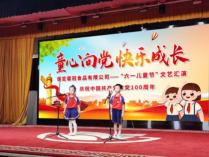 為慶祝中國(guó)共產(chǎn)黨建黨100周年,2021年5月30日保定馨冠食品有限公司于馨冠文化藝術(shù)館舉辦“童心向黨 快樂(lè)成長(zhǎng)”暨六一兒童節(jié)文藝匯演活動(dòng)。