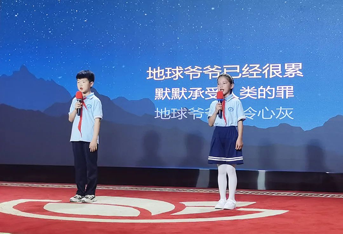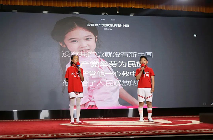 圖為 張梓軒/王昱皓 帶來(lái)的詩(shī)朗誦《黨是太陽(yáng),我是花》